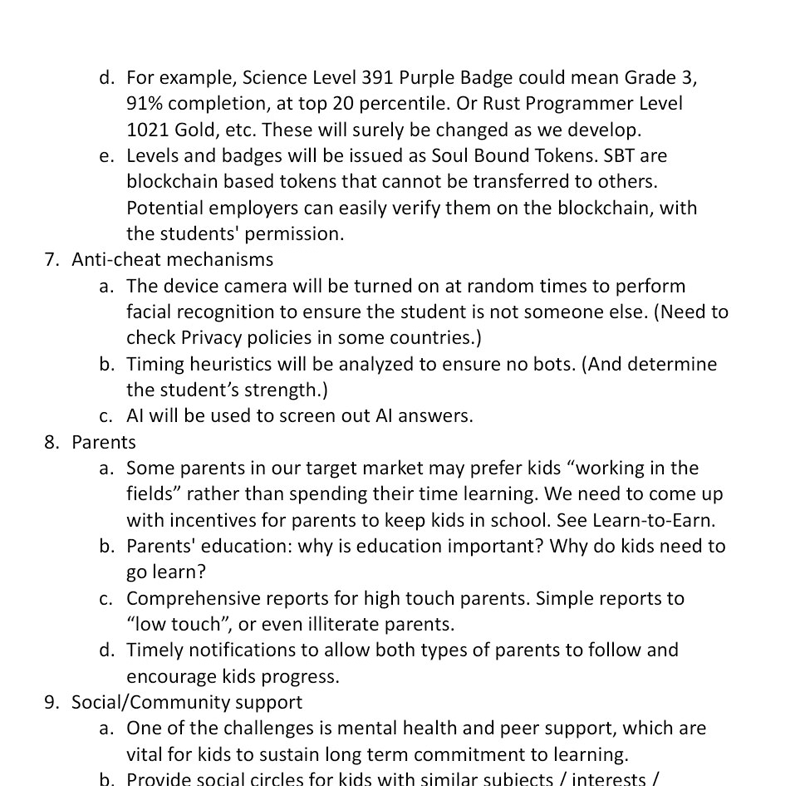 Giggle Academy is developing a Giggle level or badge system to identify students‘ learning progress in a certain subject. Levels and badges will be issued in the form of Soul Bound Tokens (SBT)